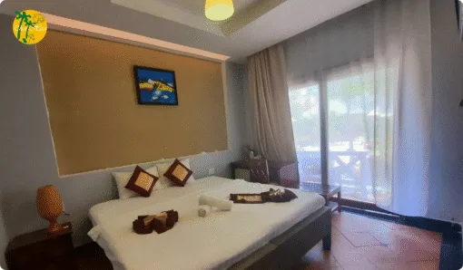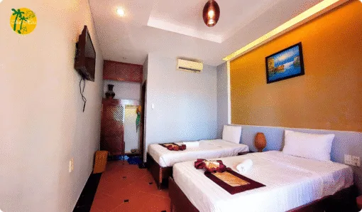 Phòng được nằm gần hồ bơi, với diện tích phòng 32m2. Phòng gồm hai giường cỡ lớn/ nhỏ.